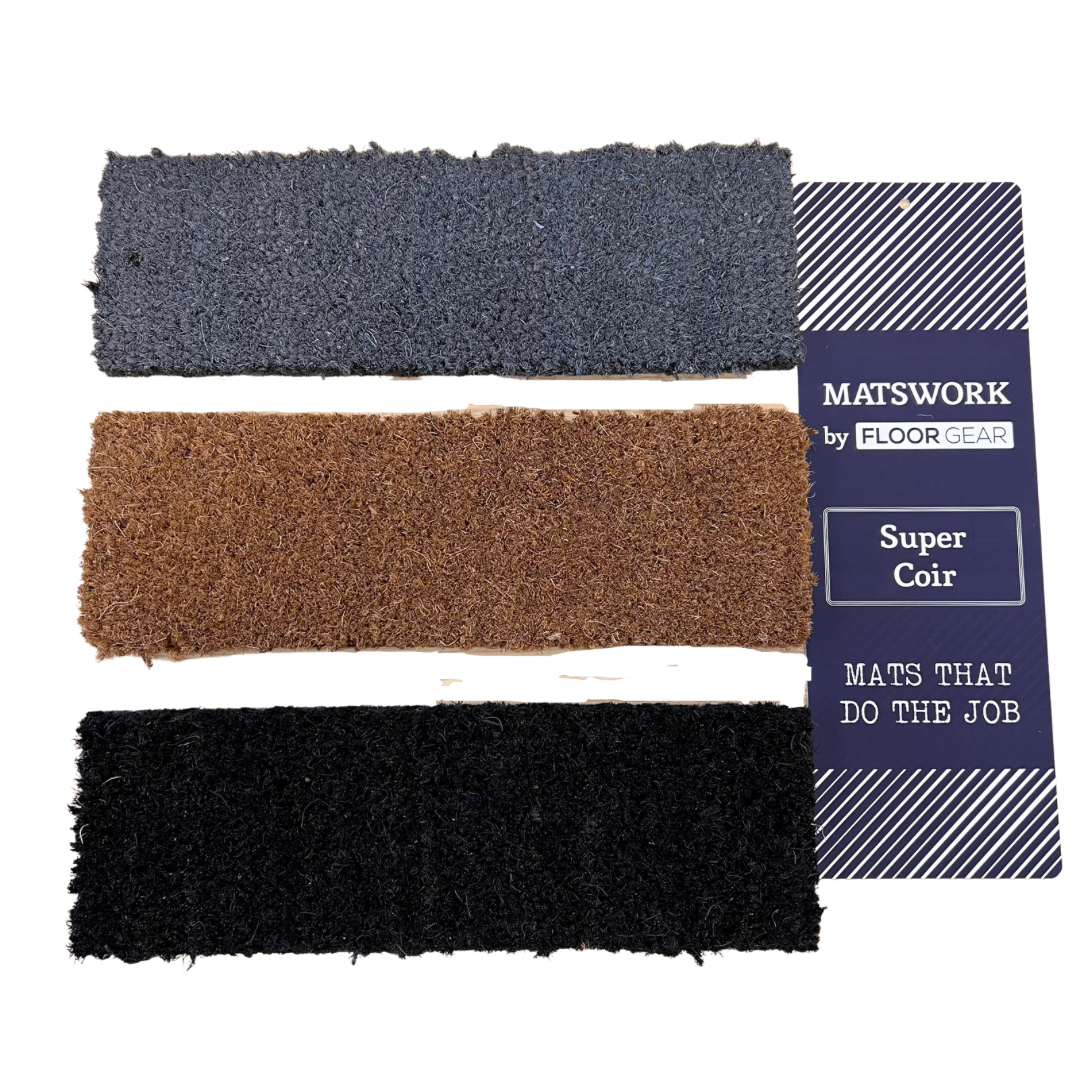 Enhance your entrance with our premium Floorgear Matswork Super Coir Matting – the perfect solution for all your entrance matting needs. Designed to excel in performance, our matting boasts exceptional absorbency, durability, and a coarse texture that effectively removes dirt and moisture from muddy shoes.